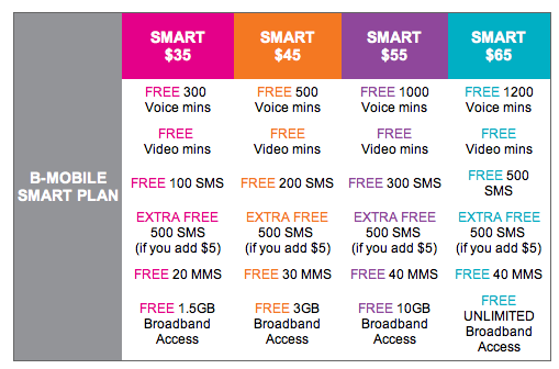 | Free MMS | 20 | 55 | 55 | 85 | 85 | Unlimited |