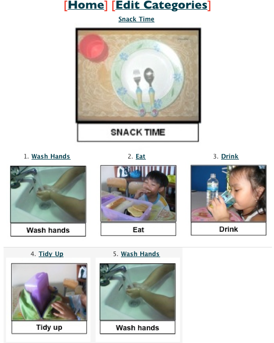 - Sequential types are used for activities such as “Washing Hands” which has a sequence which is shown below and other non-sequential activities such as “I want to go shopping”, or “I want to go home””Washing Hands” sequence: