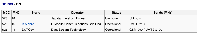 A Mobile Network Code (MNC) is used in combination with a Mobile Country Code (MCC) (also known as a “MCC / MNC tuple”) to uniquely identify a mobile phone operator/carrier using the GSM, CDMA, iDEN, TETRA and UMTS public land mobile networks and some satellite mobile networks. The ITU-T Recommendation E.212 defines mobile country codes.