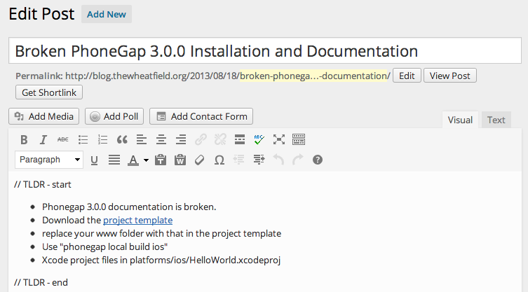 Luckily I tried editing the post via the admin interface and was greeted with the editor I was familiar with and provided the functionality that I love.