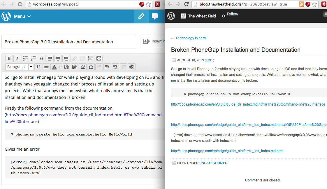 But aside from that I started composing a new post and did a preview which didn’t look right at all