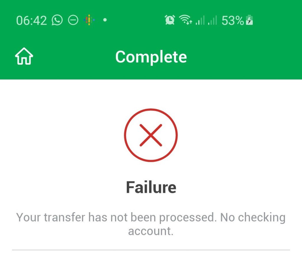So their message suggested that I deregister my device and sign in again. Tried that and I tried to do another payment/transfer and this time I got a different error: “Transaction Initiated” blank screen
