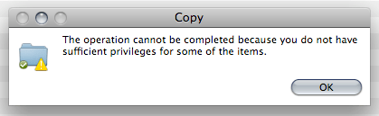 I was trying to backup some of my files in OS X onto an external hard disk and ran into the following error dialog box: “The operation cannot be completed because you do not have sufficient privileges for some of the items”
