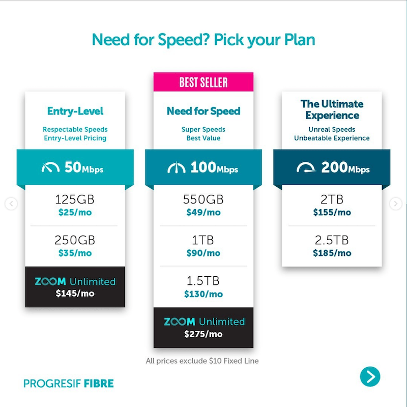 Screenshot from Progresif’s fibre plan page from September 2020